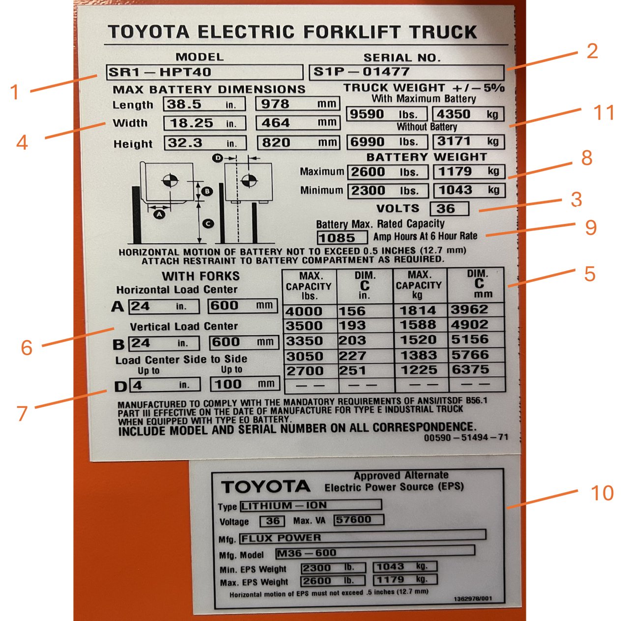 There is a variety of information that can be found on a forklift data plate, including the following: